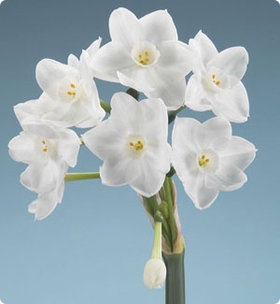 Inbal grows best in soil and not as well in water. Other types of paperwhites do well in pebbles and water. Makes a good outdoor flower in areas with mild winters. In colder climates these are easily forced inside for winter blooms. Bright light will help prevent legginess and encourages strong stems. Large 16-17 cm round bulbs. |